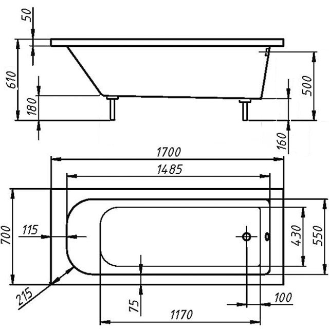 Толщина стенки ванны варьируется от 18 до 20 мм.